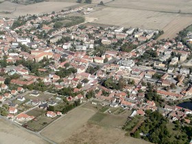 Město Unhošť u Kladna. Vyfoceno během přiblížení k dráze 06 ruzyňského letiště. Věnováno Richieemu.