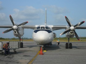 Antonov 26 vyčkává před letem z Varadera na Cayo Largo