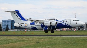 Na sobotní odpolední lince KLM z Amsterdamu se objevil tento pronajatý irský Avro RJ85, propagující irský ragbyový tým Leinster Rugby